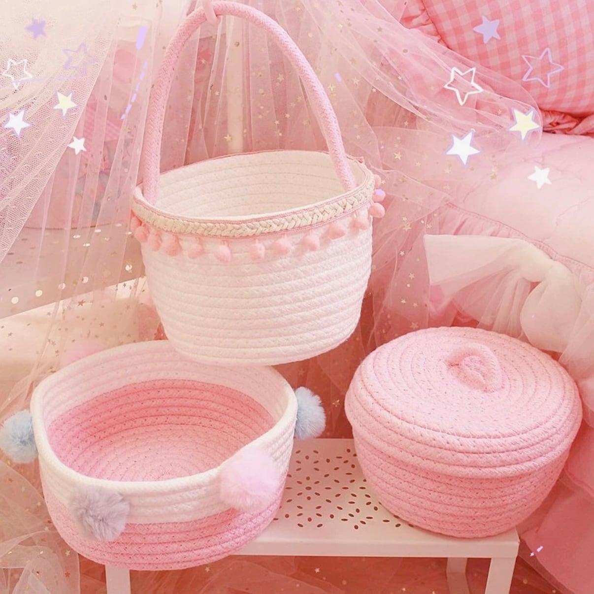 収納バスケット 6タイプ展開|ピンク・ホワイト