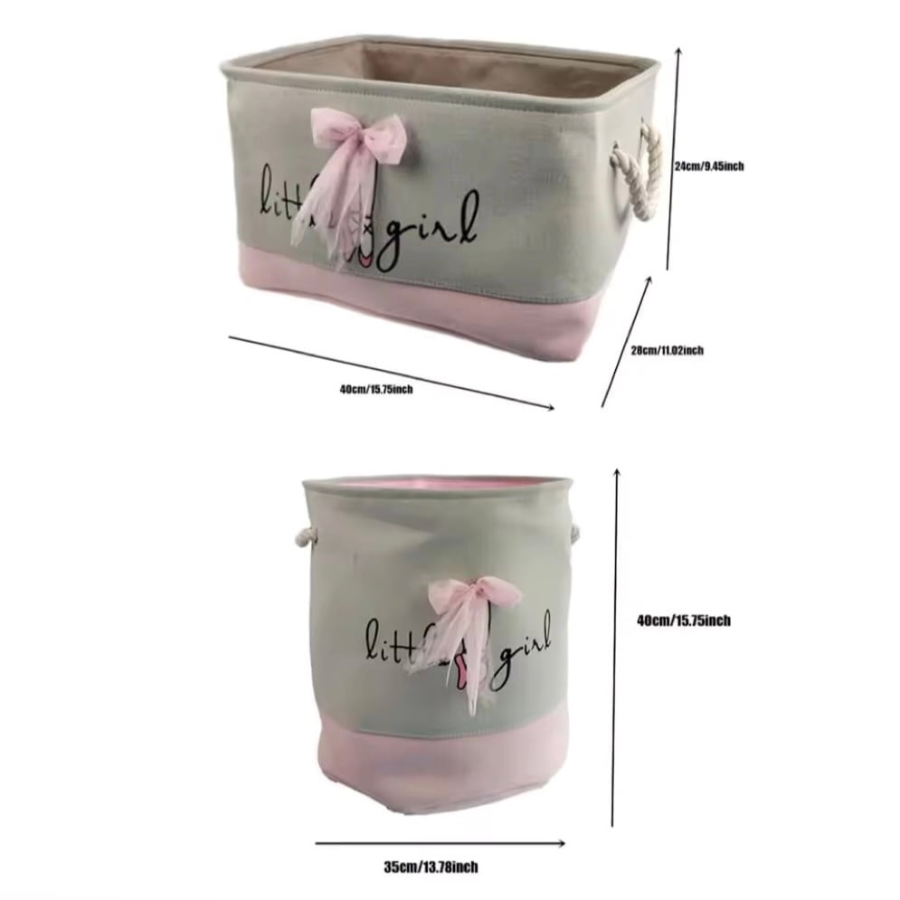 ピンクリボンの万能収納バスケット|ロープ持ち手付き