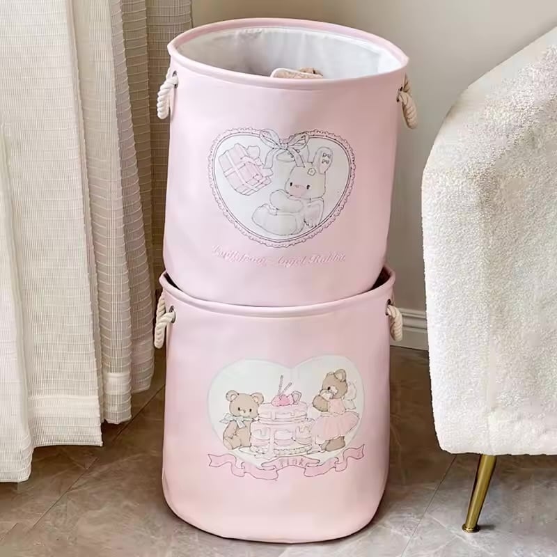 かわいさも機能性も◎|折りたたみピンクランドリーバスケット