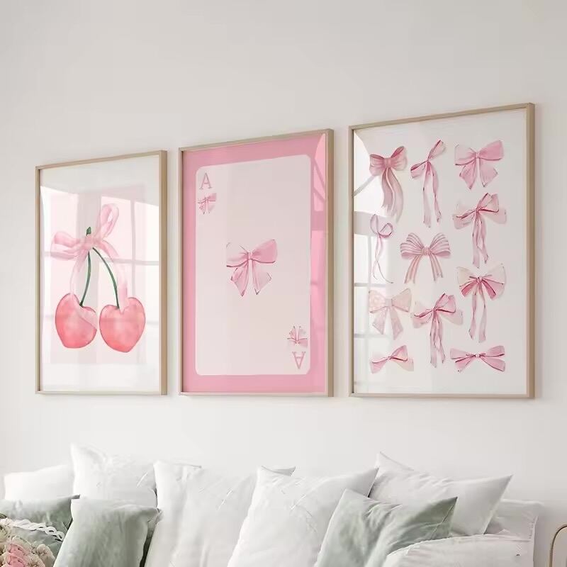 大人かわいい空間に|ピンクリボンのウォールインテリア