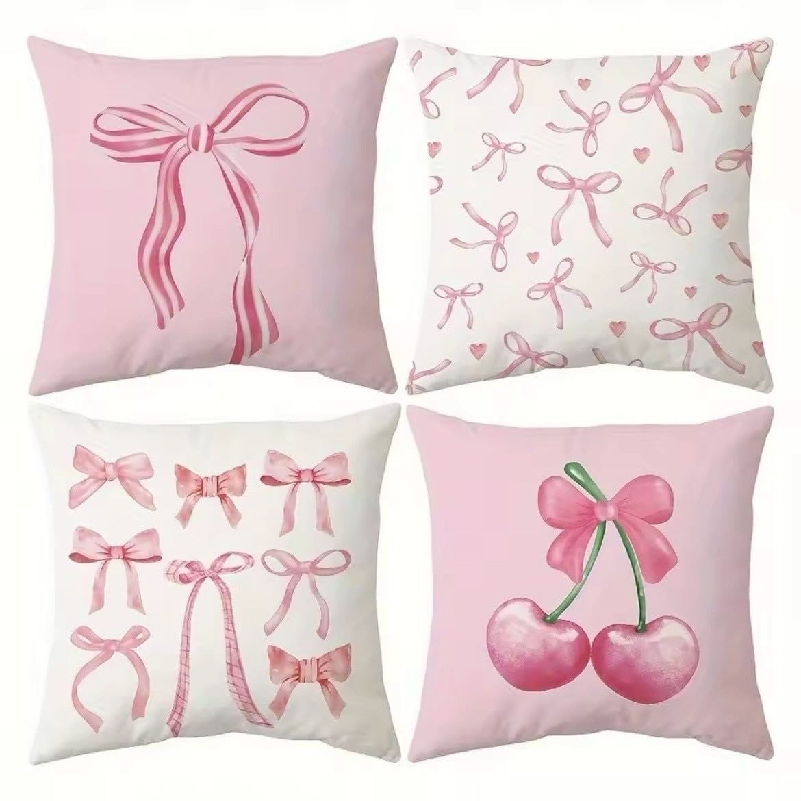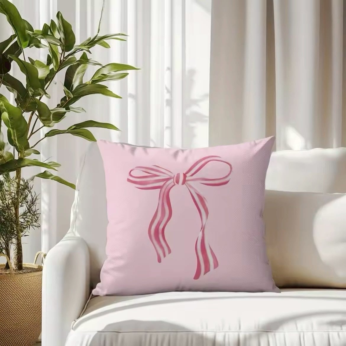 ふんわりピンクのリボンクッション|ラブリーインテリアにぴったり