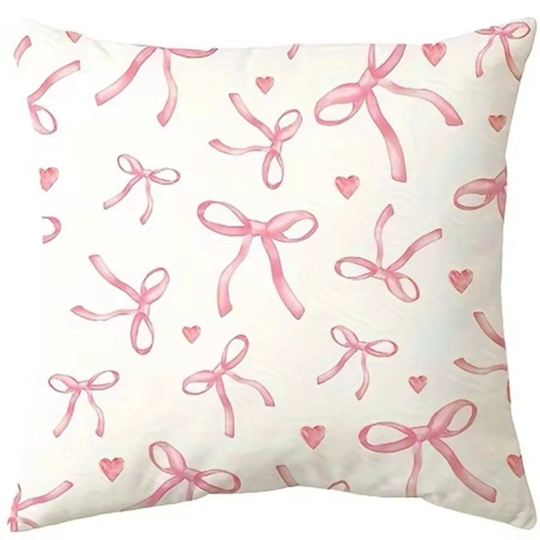 ピンクリボンがアクセント|ふんわりホワイトクッション