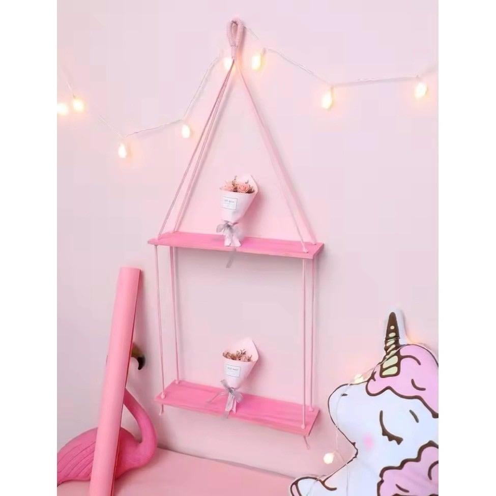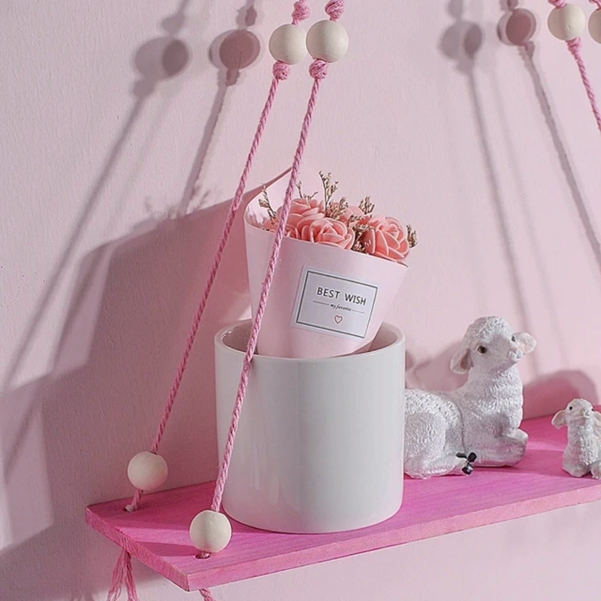 ピンク麻ロープ×木製|可愛い壁掛けディスプレイスタンド
