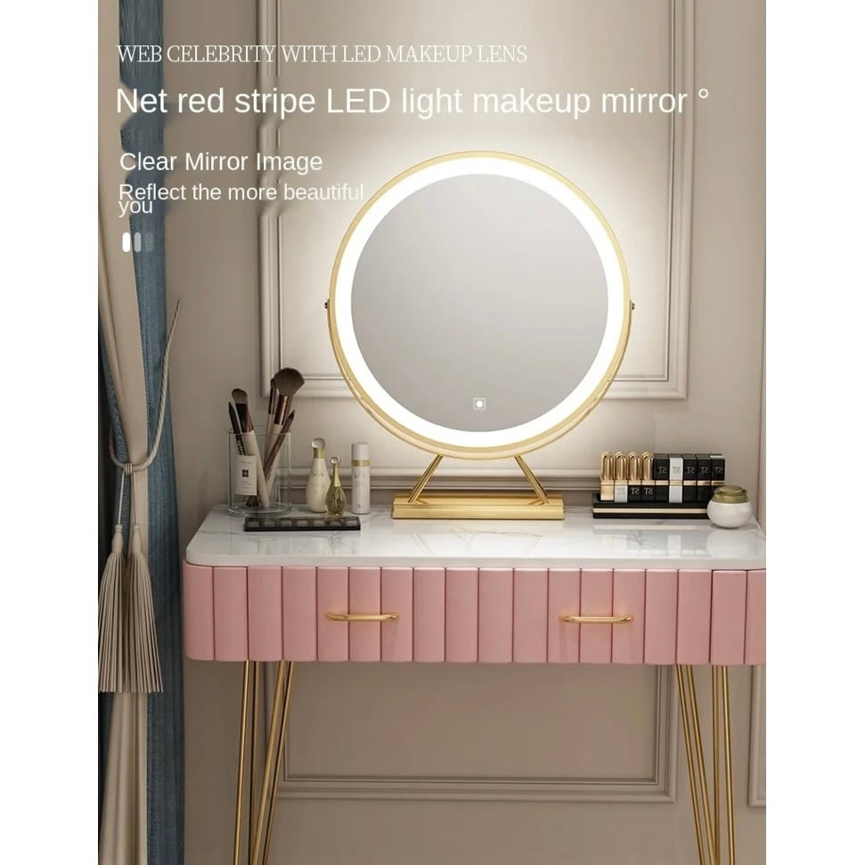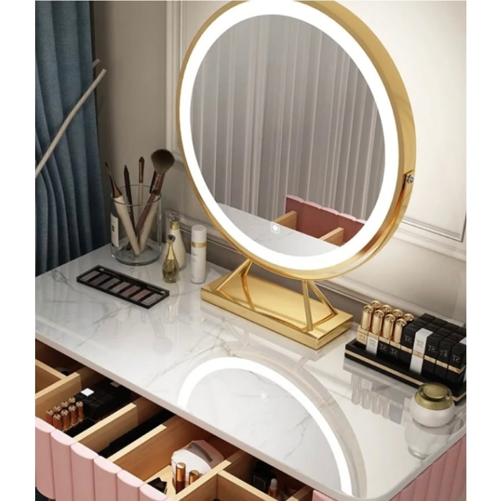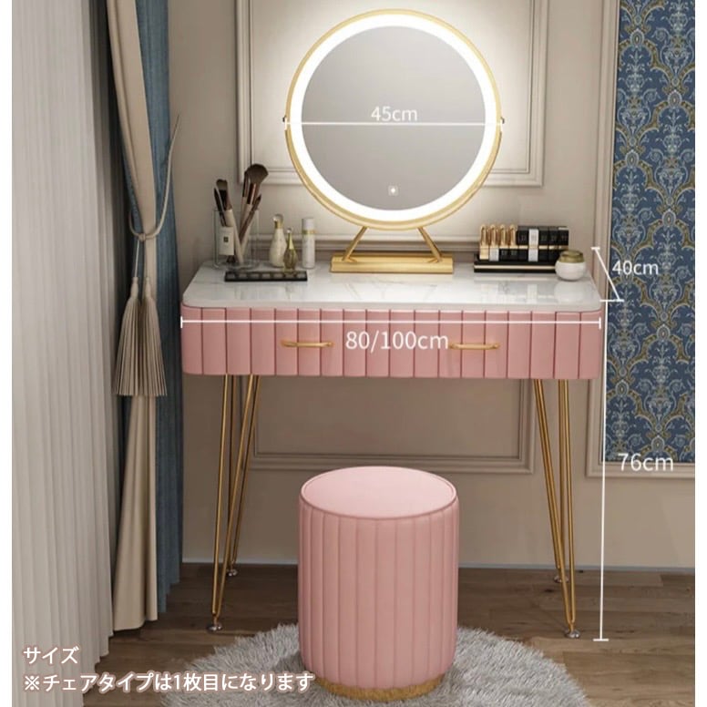 80cm幅 ピンクの大理石調ドレッサー|可愛さと高級感の両立