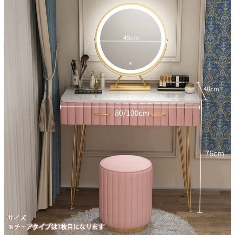 100cm幅 ピンクの大理石調ドレッサー|可愛さと高級感の両立