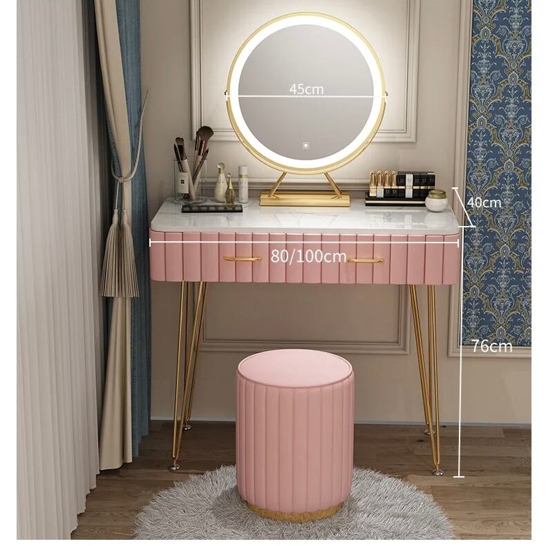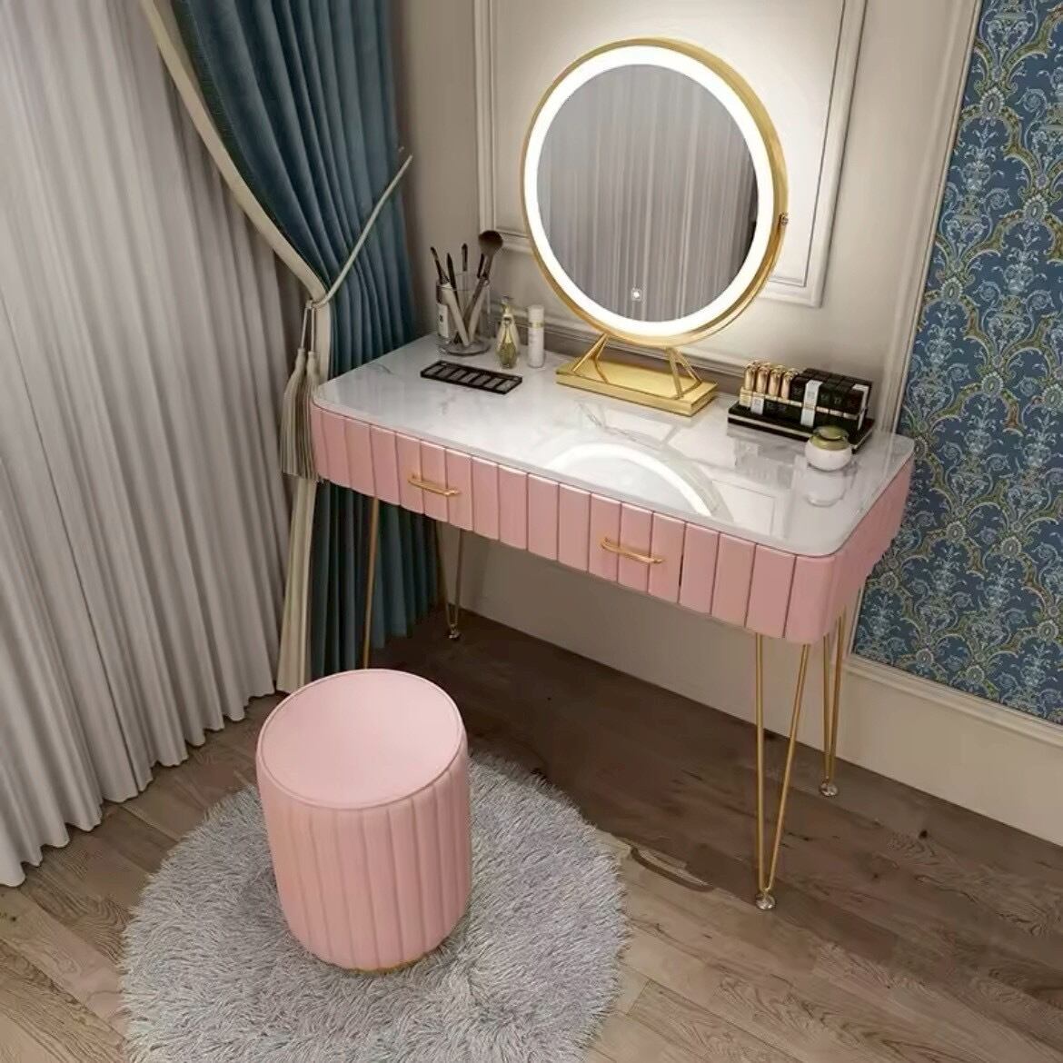100cm幅 ピンクの大理石調ドレッサー|可愛さと高級感の両立