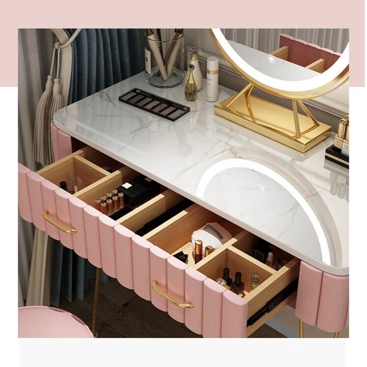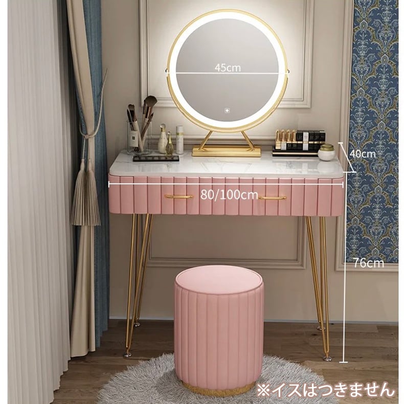 80cm幅|ピンクの大理石調ドレッサー(チェア無し)
