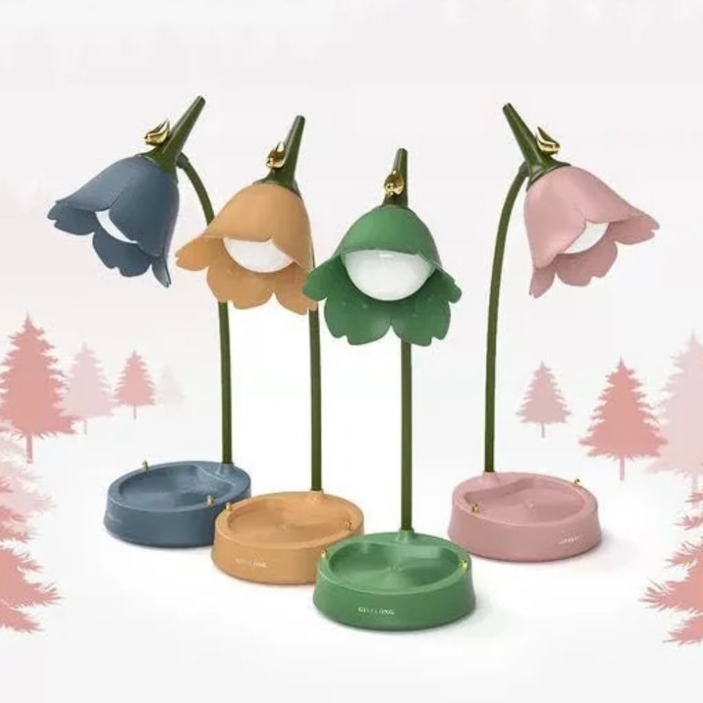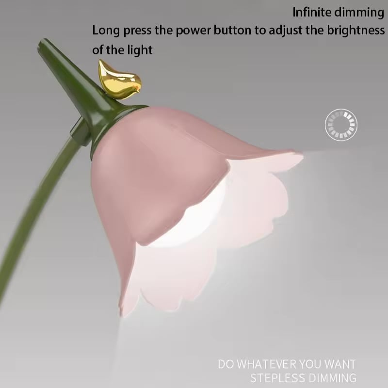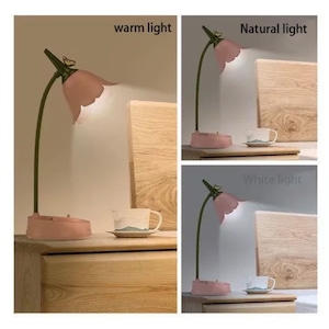 ピンク 花デスクランプ|調光&USB充電可能・機能充実
