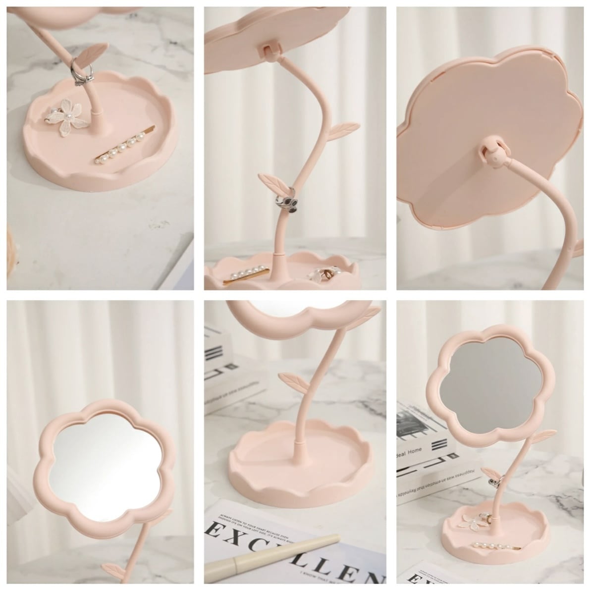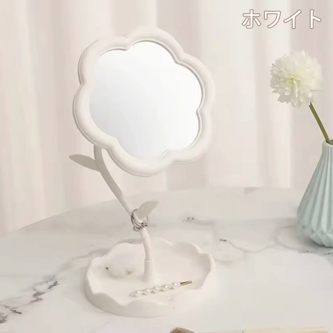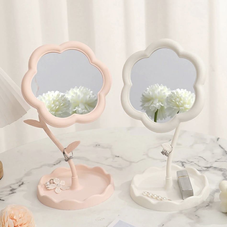花デザインミラー 2色展開|コンパクト