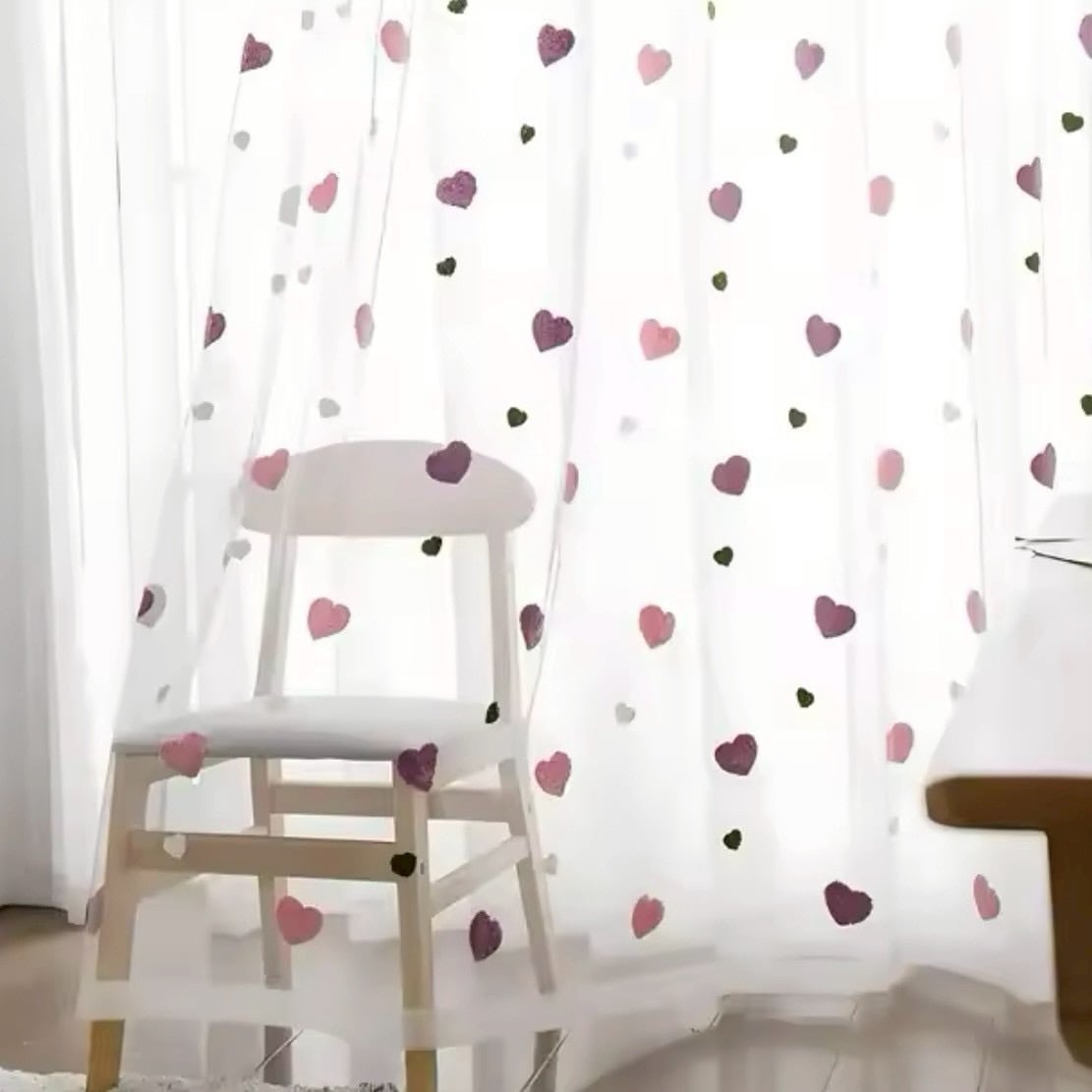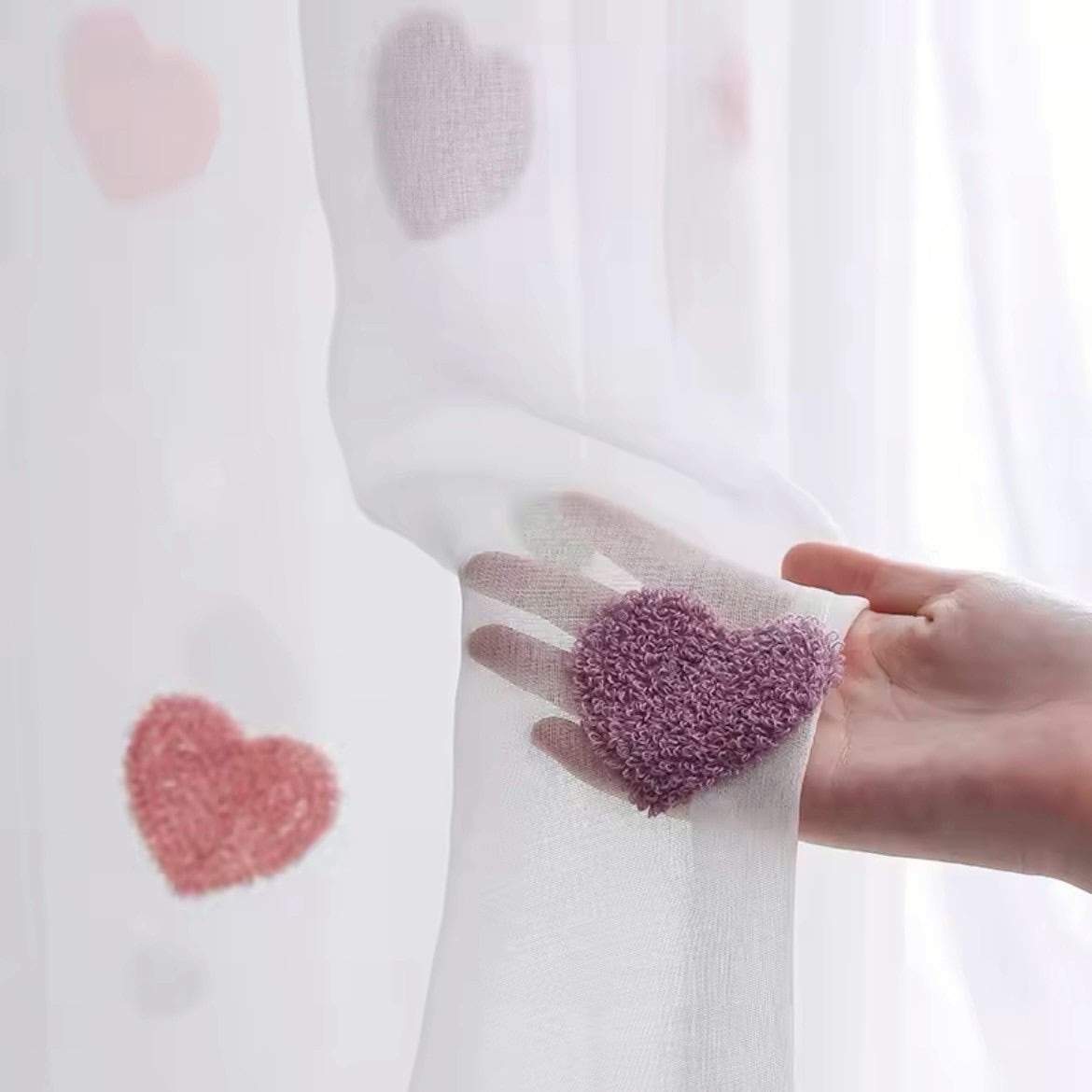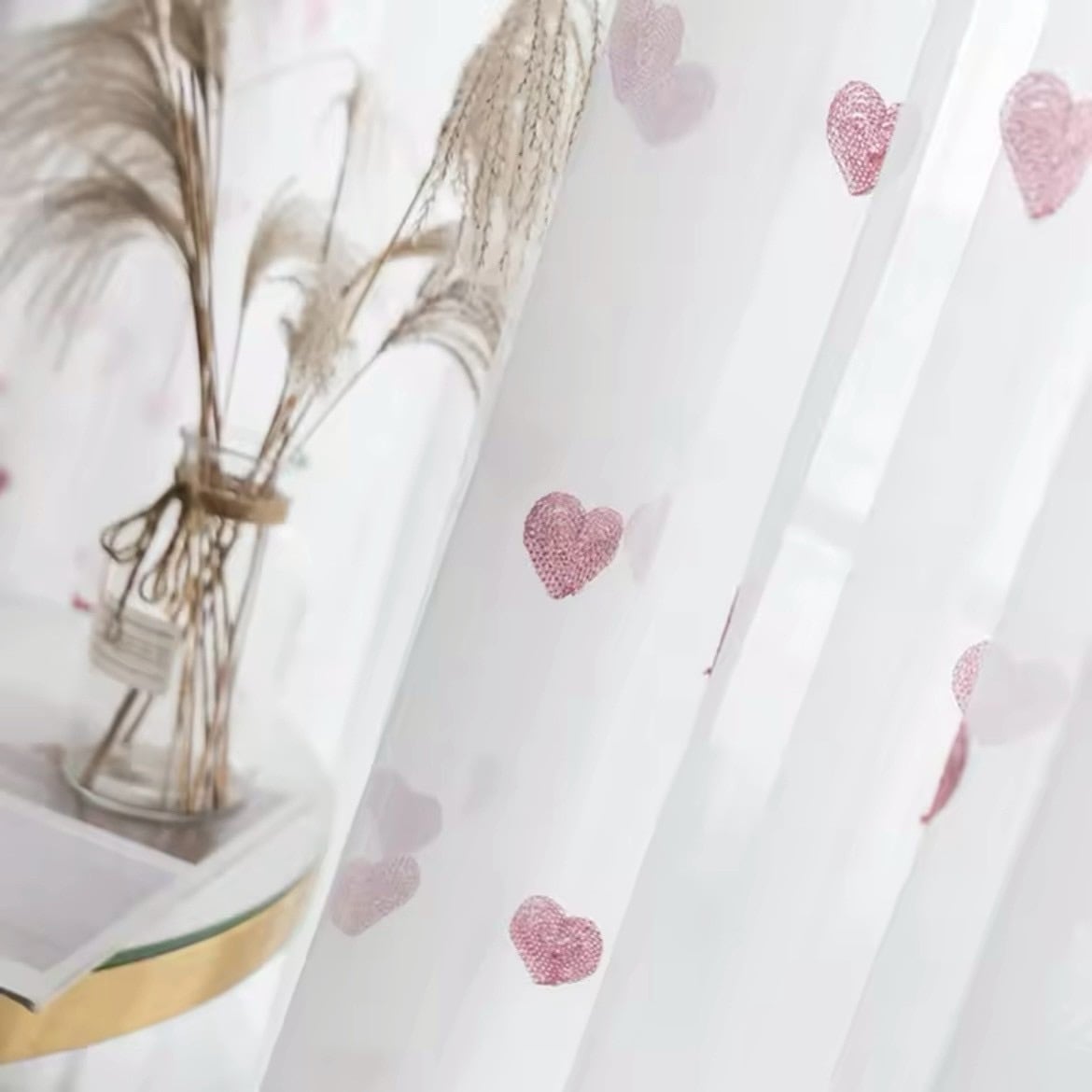 ハート柄のチュールカーテン|ピンク