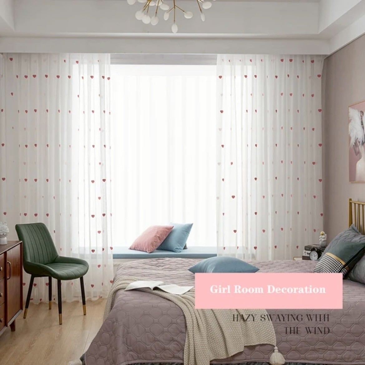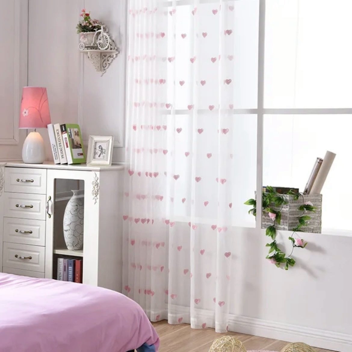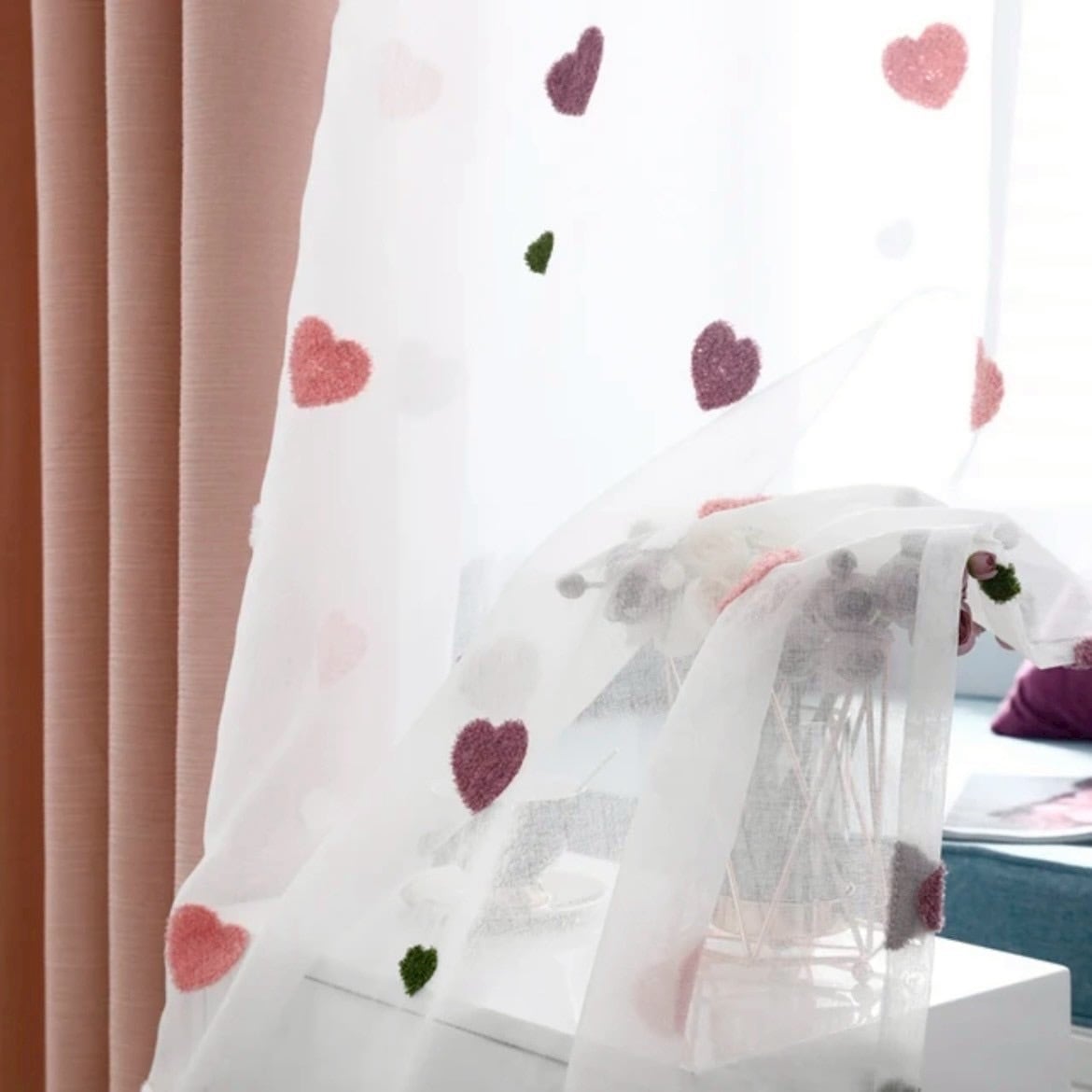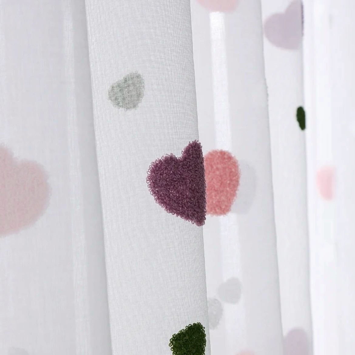 ハート柄のチュールカーテン|ピンク