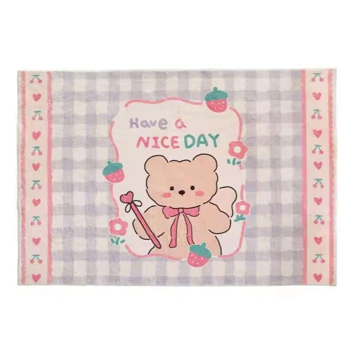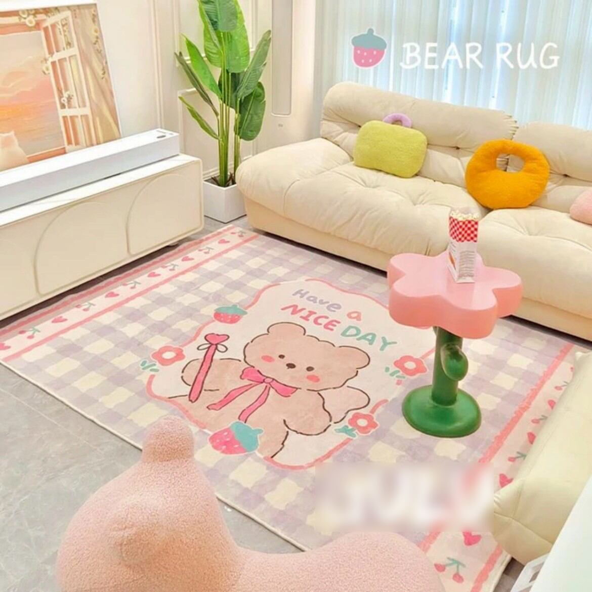 クマ×チェック柄のカーペット|可愛らしいデザイン