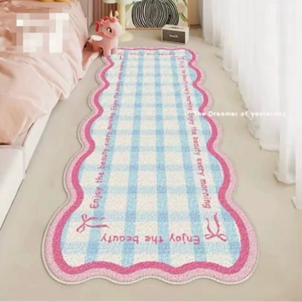 リボン×チェック柄のカーペット|ウェーブデザイン