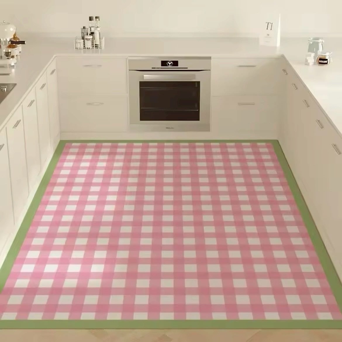 チェック柄のカーペット|ピンク×グリーン