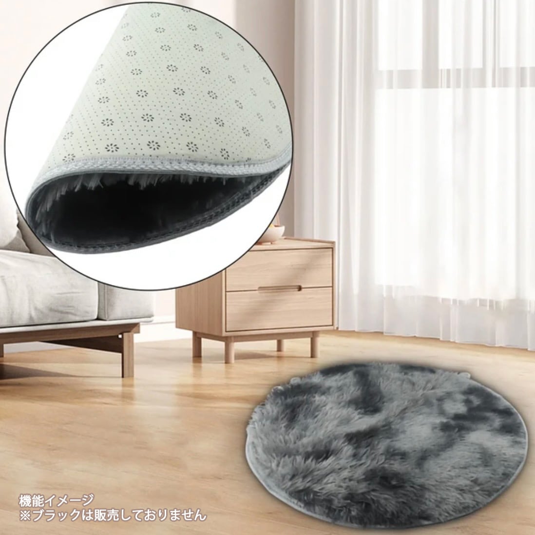 ふわふわシャギーラグ|円形 ホワイト