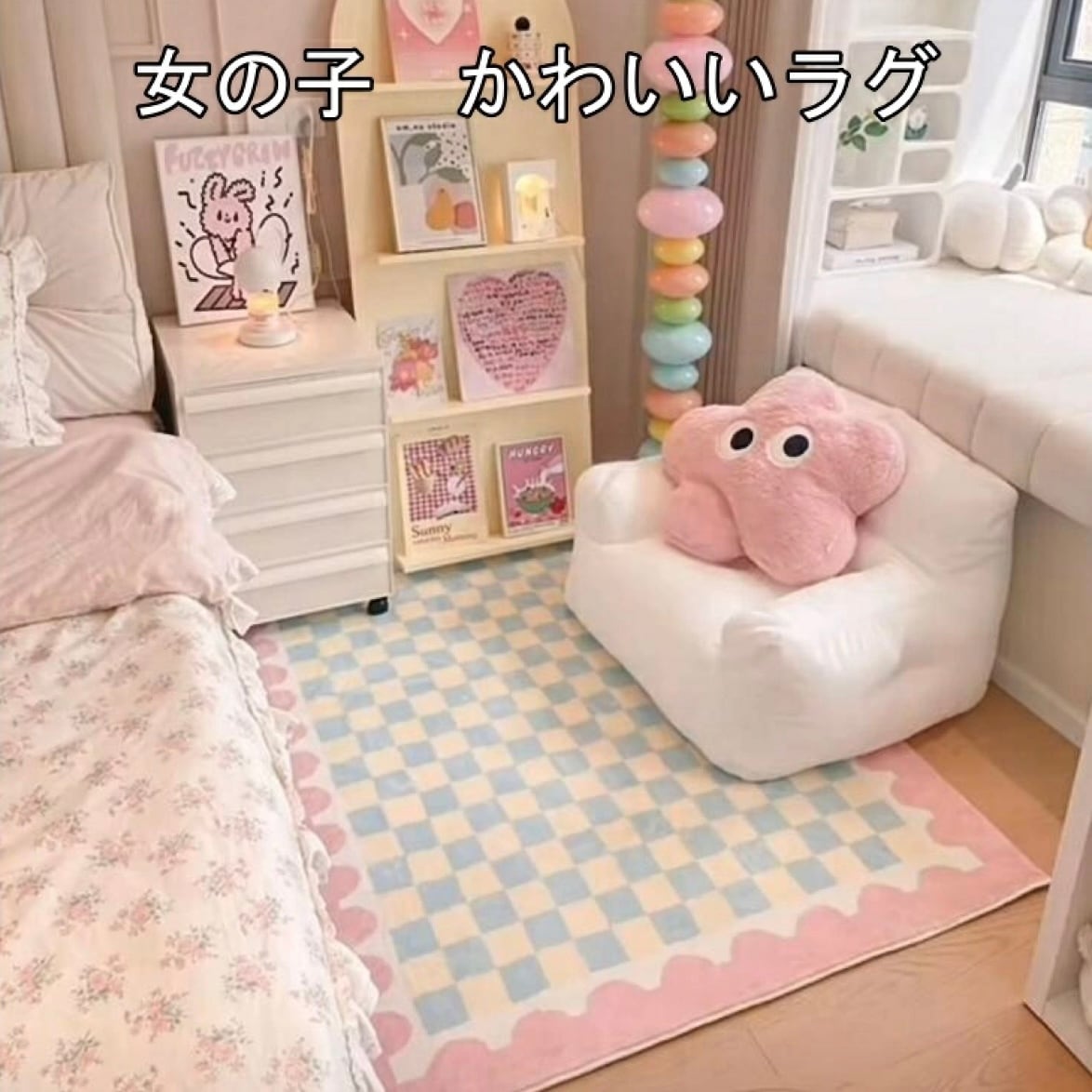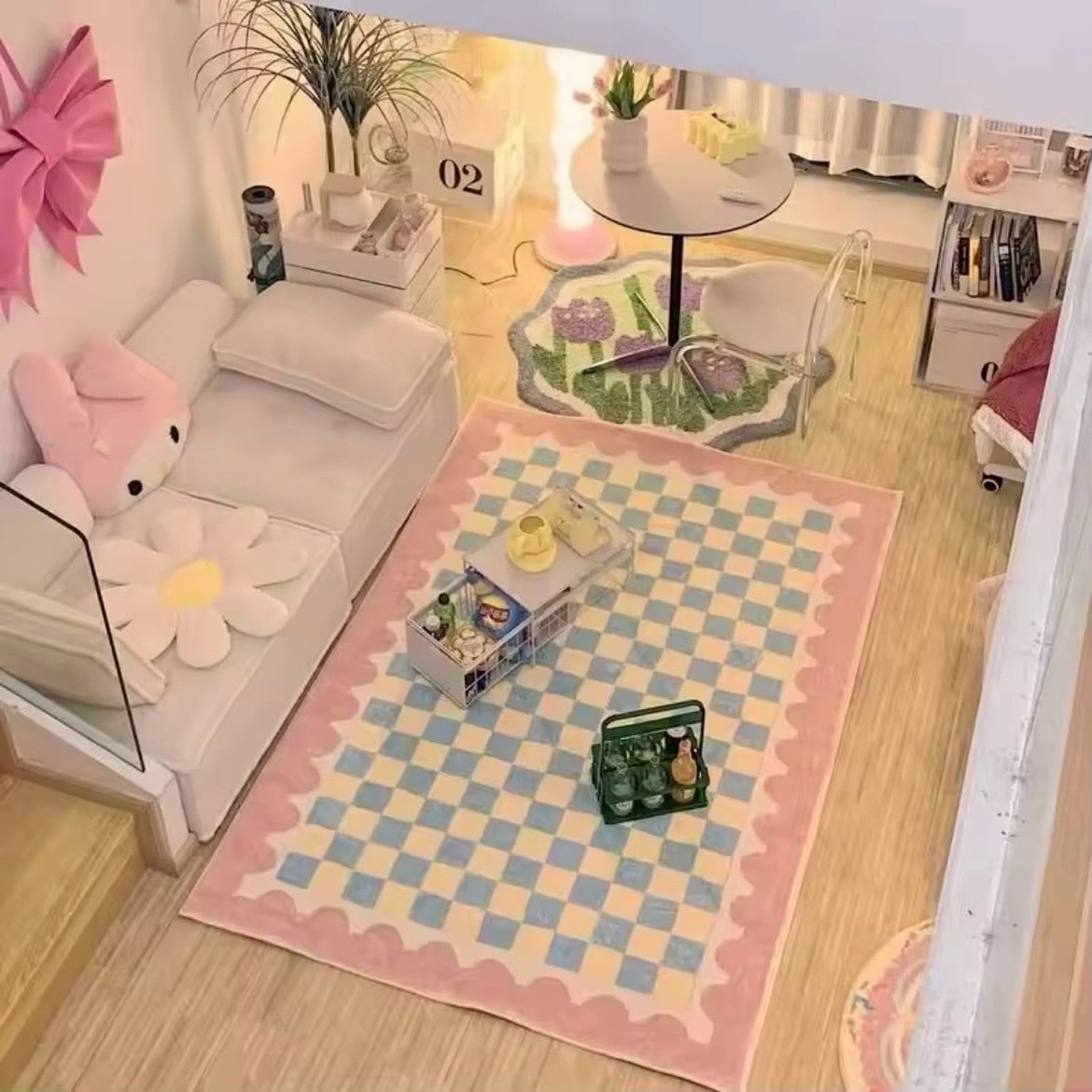 淡いカラーのチェック柄カーペット|優しいお部屋に