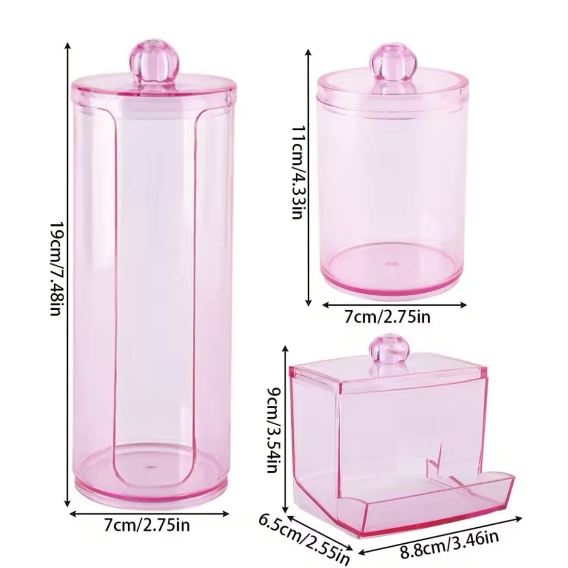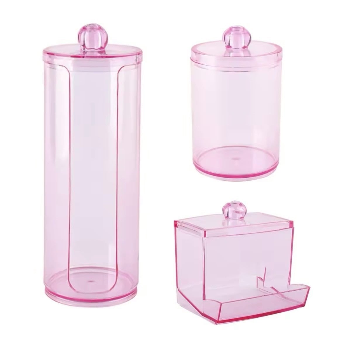 蓋付きメイク収納BOX 3セット|クリアピンク