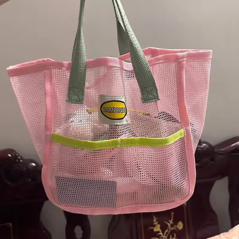 メッシュ収納バッグ|ピンク