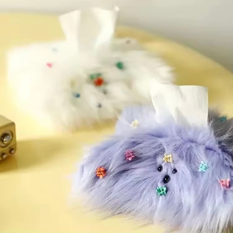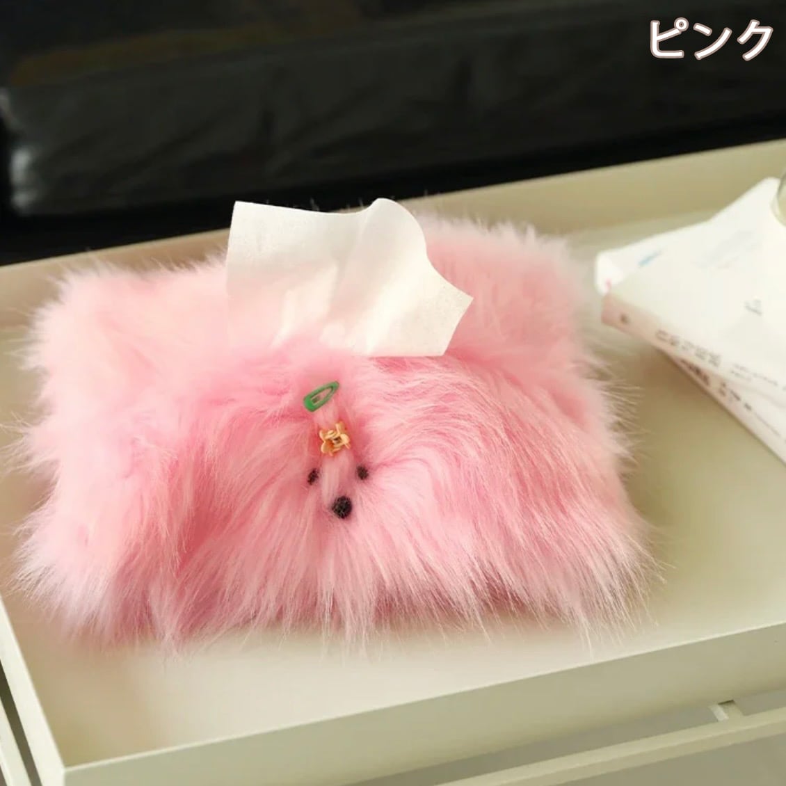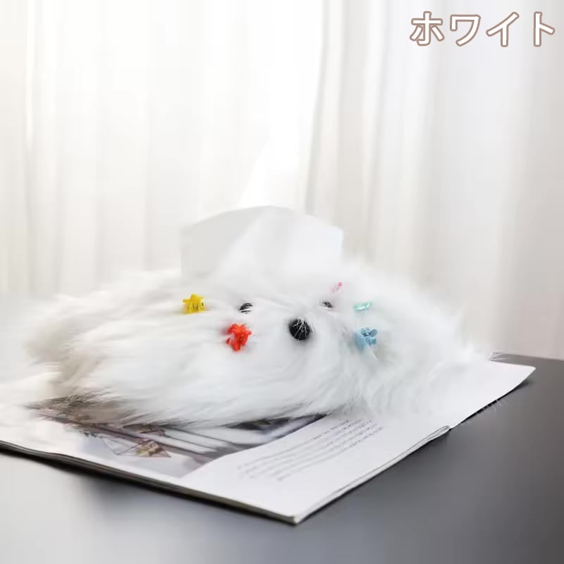 ショートヘアぬいぐるみモンスターティッシュボックス|ホワイト・ピンク