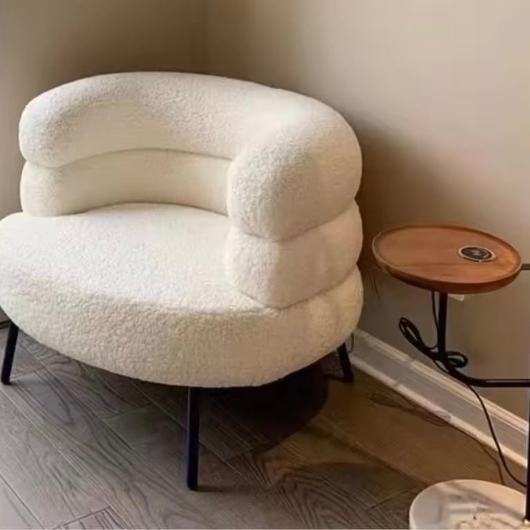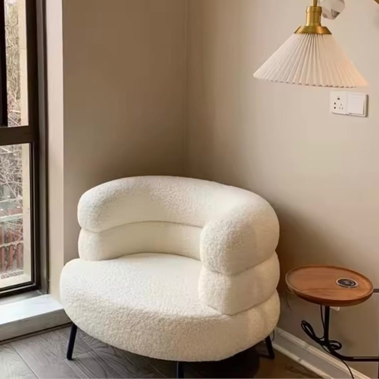 北欧シンプルモダンラムフリースチェア|ホワイト・ピンク